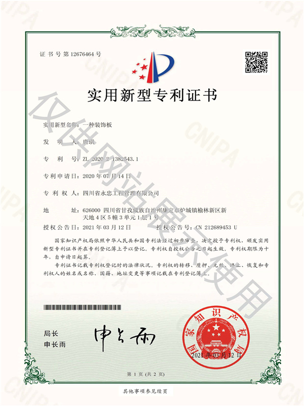 Patent certificate